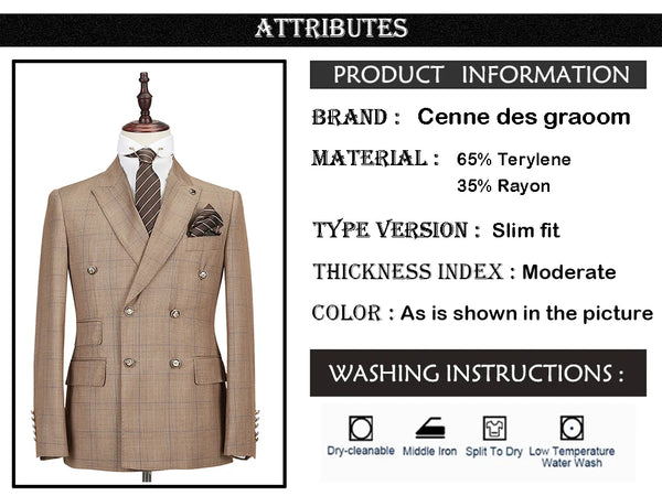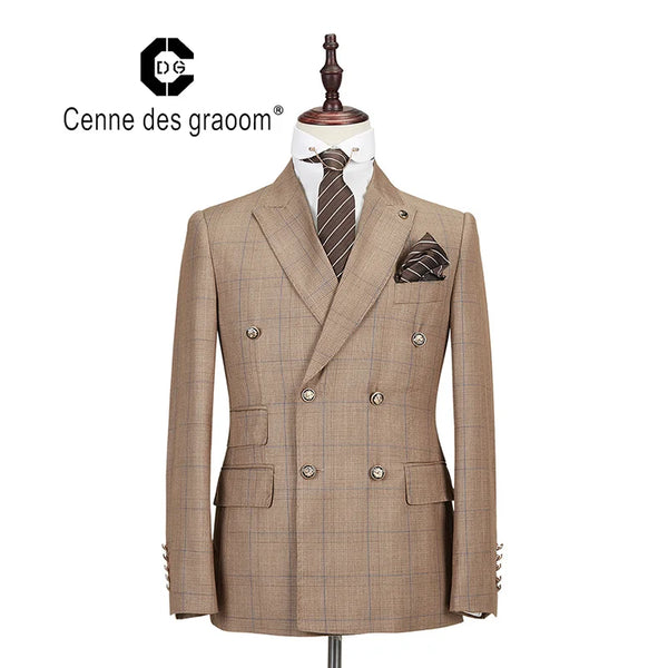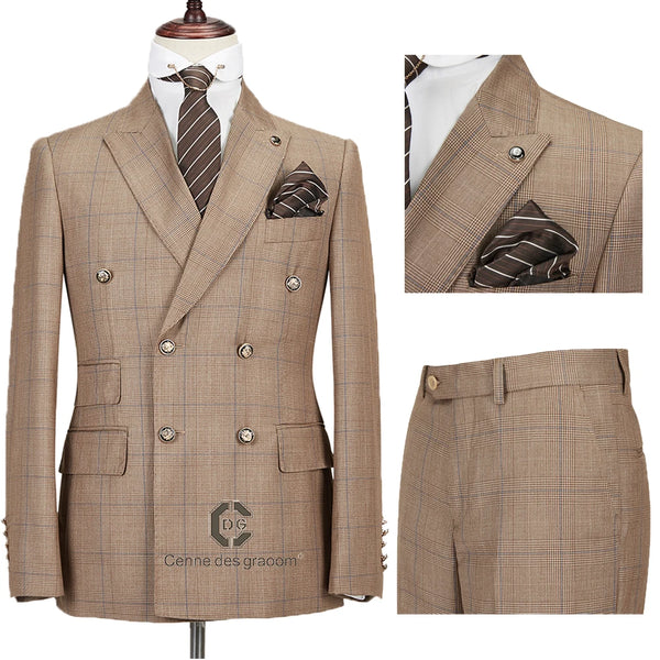 Cenne Des Graoom Men's Plaid Double-Breasted Two-Piece Suit