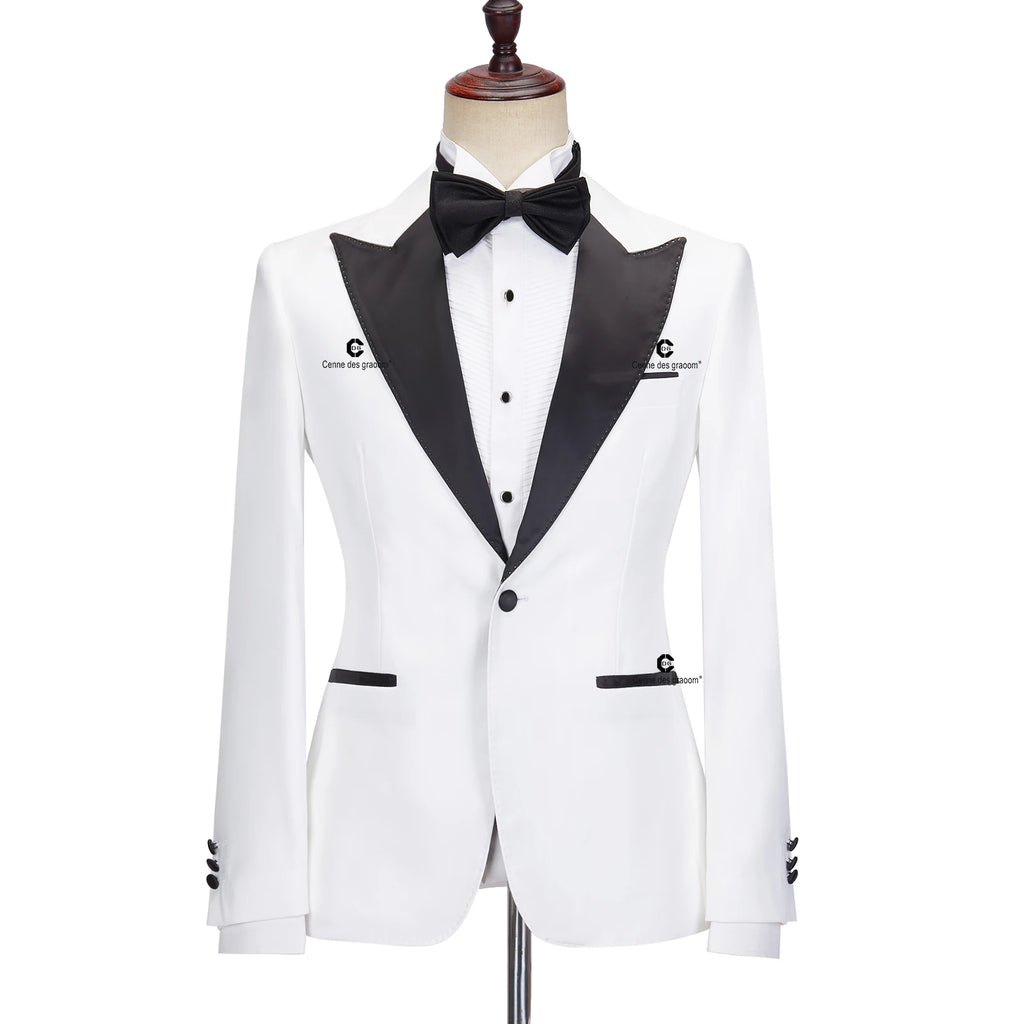 Cenne Des Graoom Lapel Slim Fit Black and White Solid One Button Elegant Suit