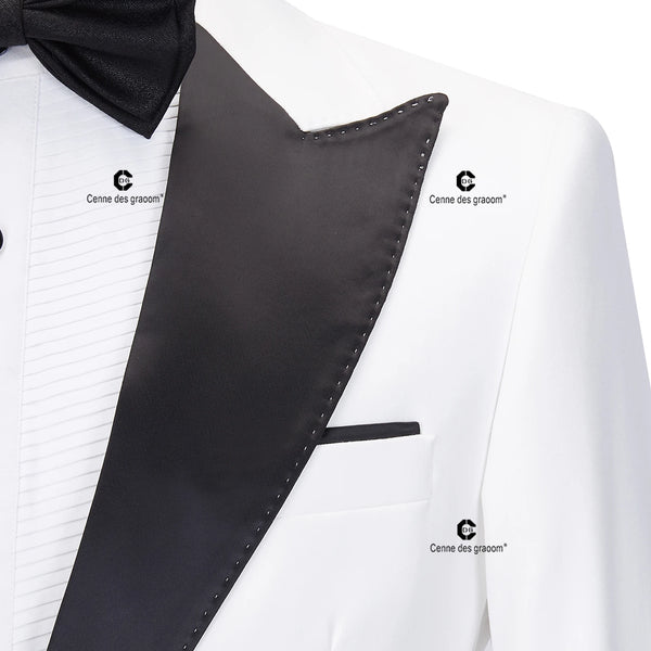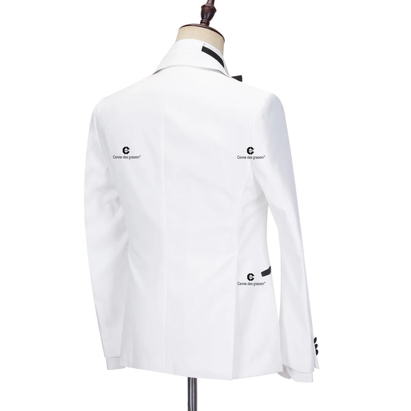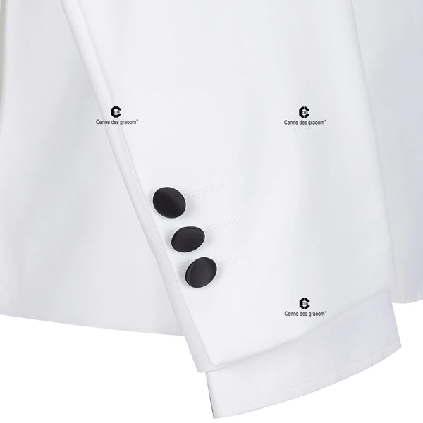 Cenne Des Graoom Lapel Slim Fit Black and White Solid One Button Elegant Suit