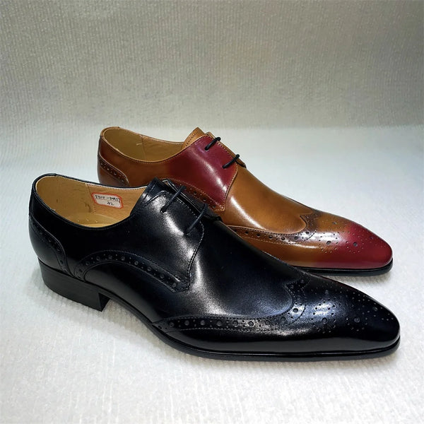 Genuine Leather Brogue Shoes Handmade Casual Oxfords Breathable Lace-Up Dress Shoes